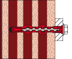 - Die Widerhaken aus Metall verkeilen sich im Baustoff und sorgen so für hohe Tragfähigkeiten.