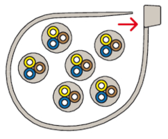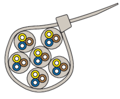 - Kabelbinder um den zu fixierenden Gegenstand legen und das Band durch den Kopf des Kabelbinders ziehen. Durch das Einrasten der Zunge in der Verzahnung kann der Kabelbinder nicht mehr geöffnet werden.