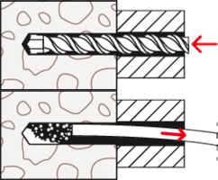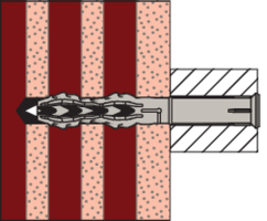 - In Lochbaustoffen verankert der Dübel im Hohlraum.