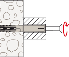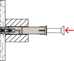 - Dübel spreizt in Vollbaustoffen.