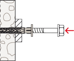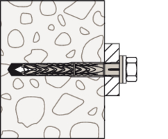 - In Lochsteinmauerwerk wird durch die zwei Spreizzonen eine untergrundschonende Krafteinleitung gewährleistet. Die porösen Steinstege werden durch die zweite Spreizzone nicht zerstört und können dadurch zur Kraftweiterleitung herangezogen werden.