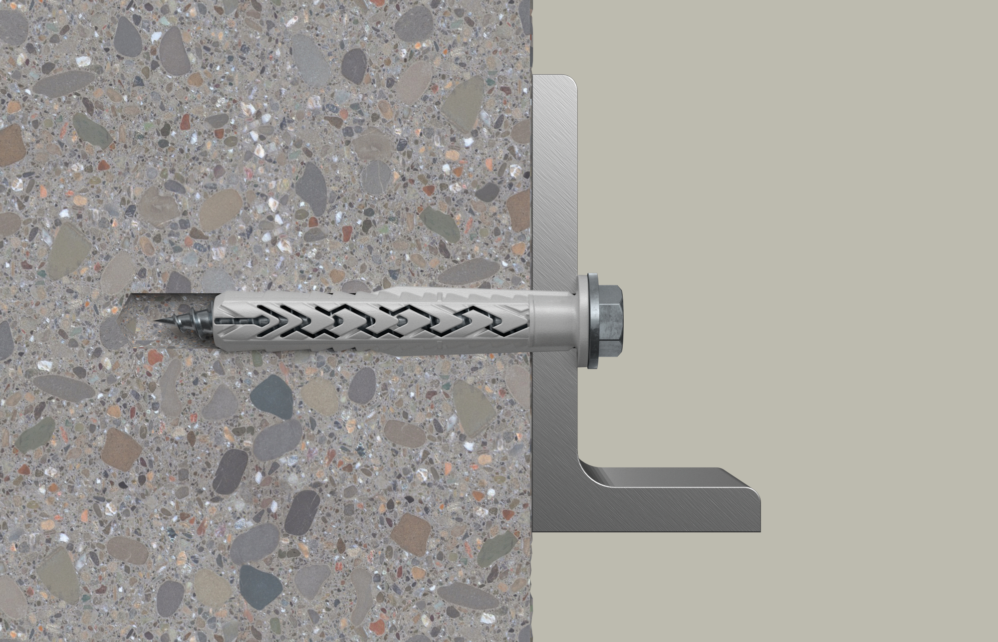 Der fischer Langschaftdübel SXRL-FUS R ist mit der fischer Sechskantschraube mit angeformter Scheibe und integrierter Bit-Aufnahme für Mehrfachbefestigungen von nicht tragenden Systemen in Mauerwerk, Beton und Porenbeton zugelassen. In Lochsteinmauerwerk leiten die zwei Spreizzonen des Dübels gleichmäßig Kraft ein, in Porenbeton und Vollbaustoff vereinen sich diese zu einem langen Spreizelement. Mit der Sicherheitsschraube aus nicht rostendem Stahl ist der Langschaftdübel für Befestigungen von Metallkonstruktionen im Außenbereich geeignet.
