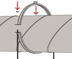 - Ab Größe 450 mm: Befestigung der Rohrschellen mit zwei Gewindestangen am Schellenband möglich zur Verdopplung der angegebenen Lasten.