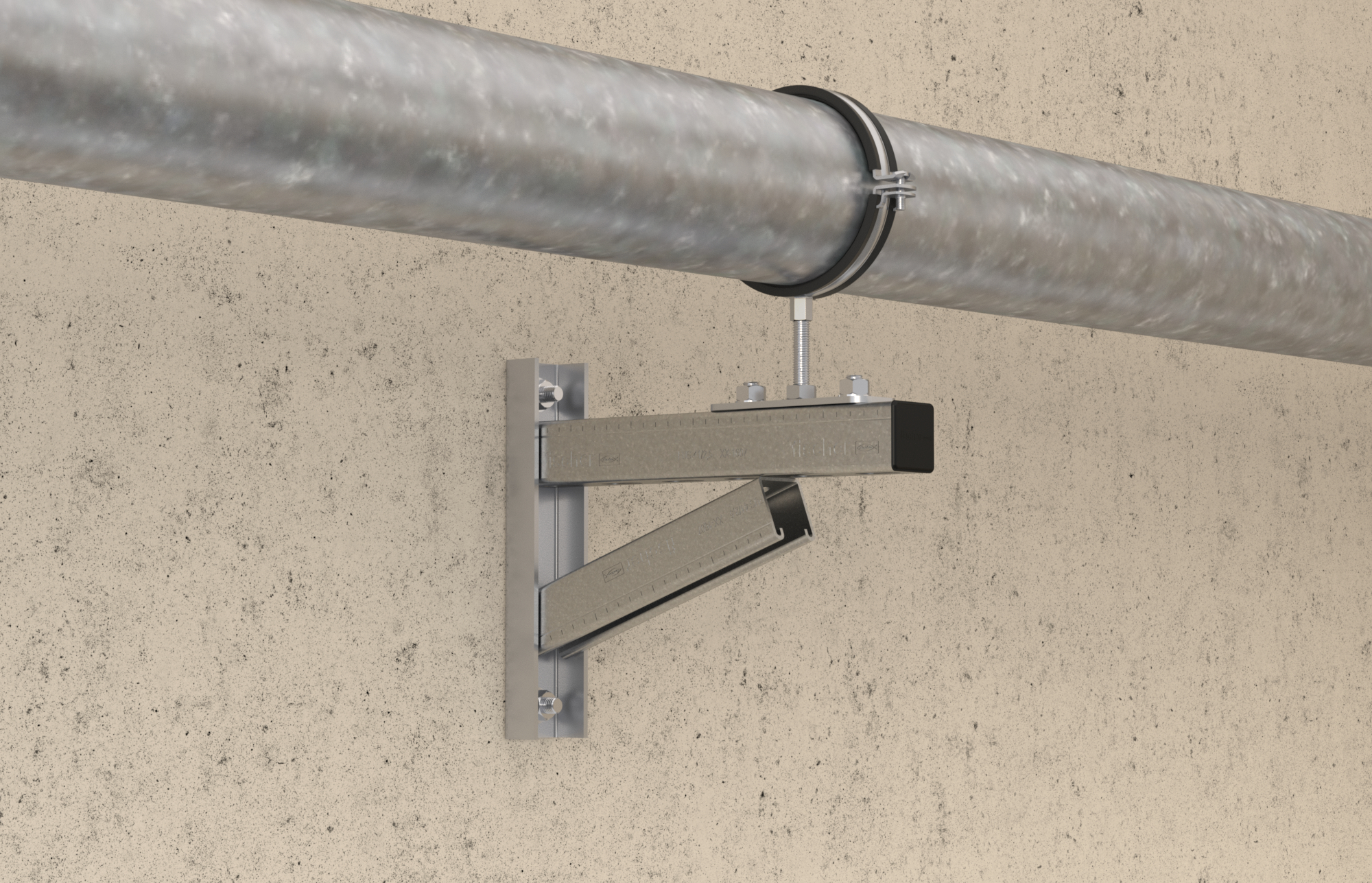 - Schnelle und einfache Montage von z. B. Rohrtrassen mit hohen Lasten entlang der Wand.