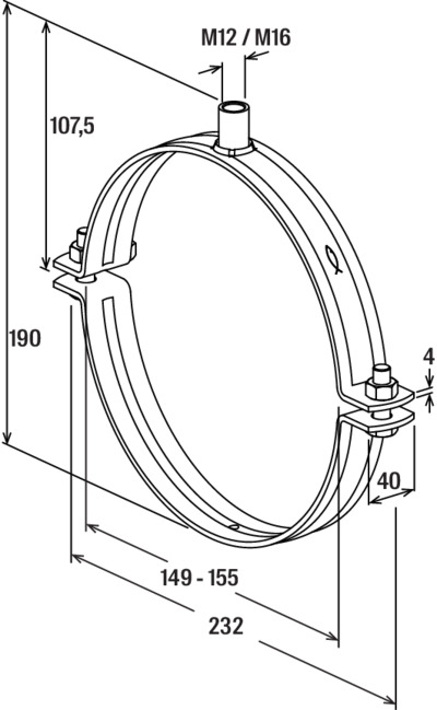 Eigenschaften "fischer Massivrohrschelle FRSMN 149 - 155 mit Kombianschlussgewinde M12/M16"