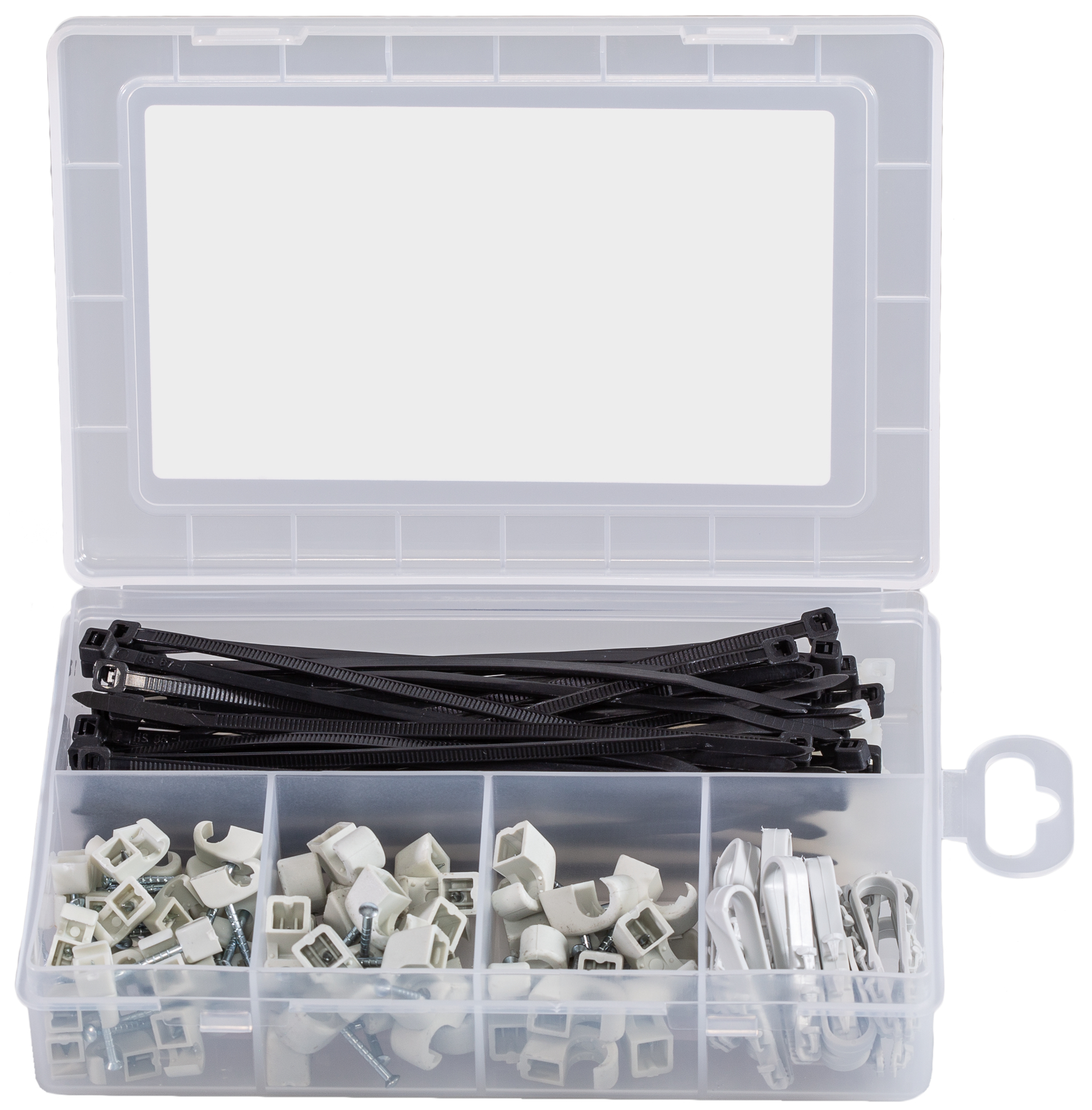 | Inhalt: | 40 x Kabelbinder BN 3,6 x 150 transparent - 40 x Kabelbinder BN 3,6 x 150 schwarz - 15 x Leitungsschlaufe SF plus LS 3/13 - 30 x Mehrbereichsnagelschelle MNS 4-7 - 30 x Mehrbereichsnagelschelle MNS 7-11 |