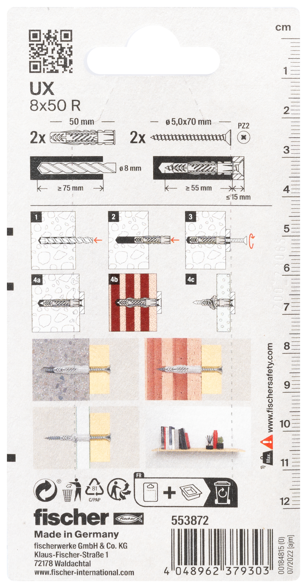 | Inhalt: | 2 x Universaldübel UX 8 x 50 R - 2 x Spanplattenschraube 5,0 x 70 |
