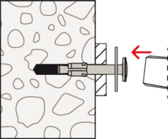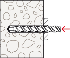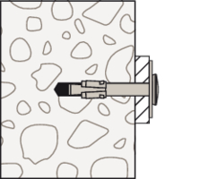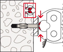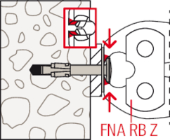 - Bei Belastung spreizt der installierte Nagelanker FNA II selbständig nach. Hierbei wird der Konus in den Spreizclip gezogen und verspannt diesen gegen die Bohrlochwand.