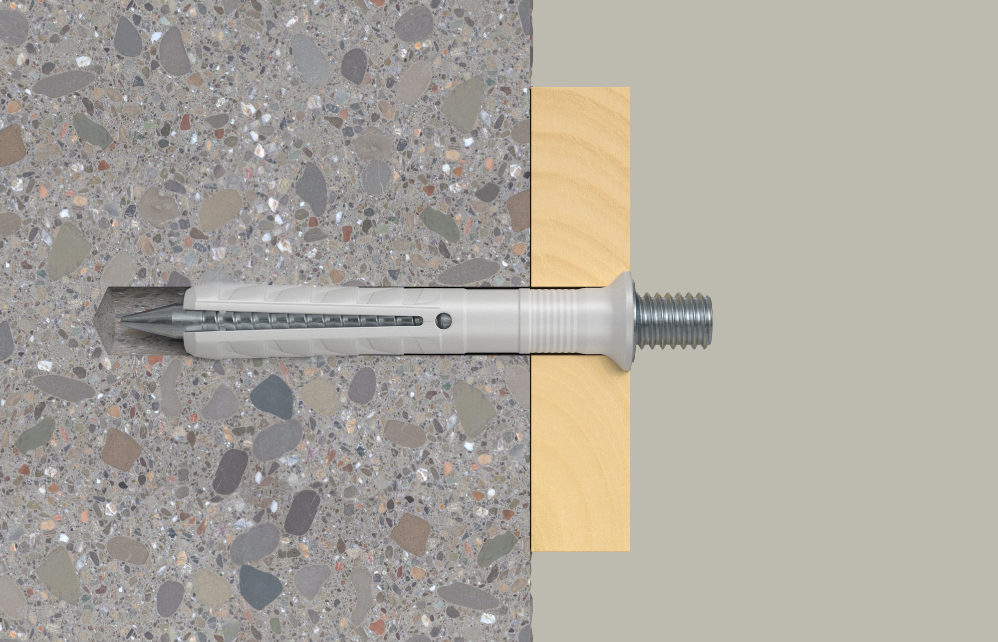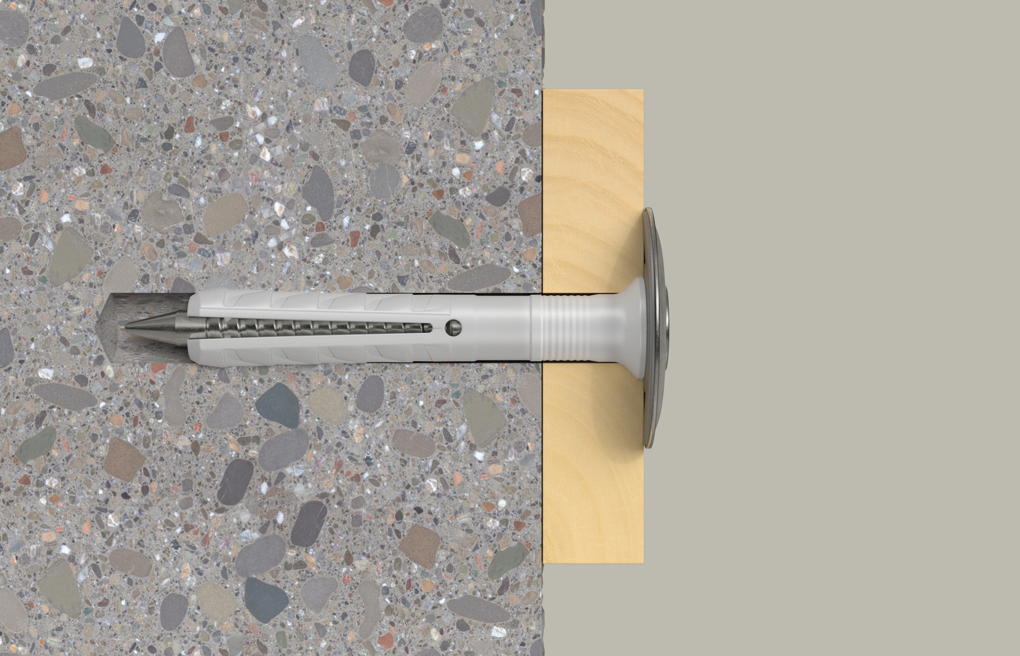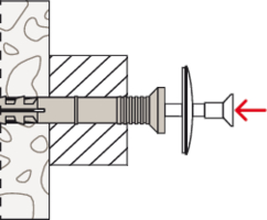 - Einfache Montage durch integrierte Einschlagsperre. Diese vermeidet das vorzeitige Aufspreizen des Dübels.
