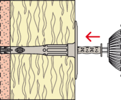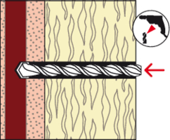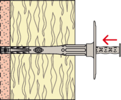 - Der Befestiger wird durch die Dämmung in das Bohrloch gesteckt und anschließend verschraubt.