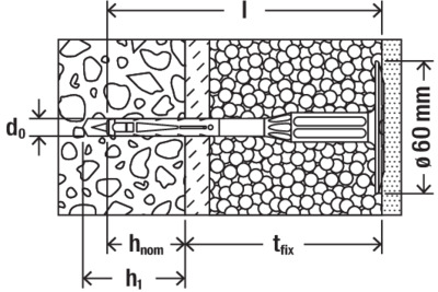- Eine Einbindetiefe für alle Baustoffe.