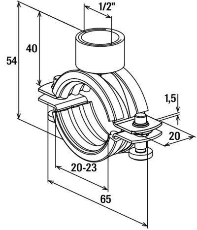Die zweischraubige Rohrschelle mit einfachem, zölligen Anschlussgewinde.