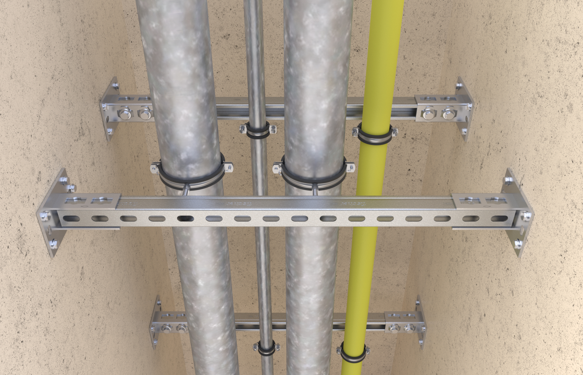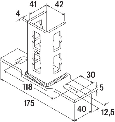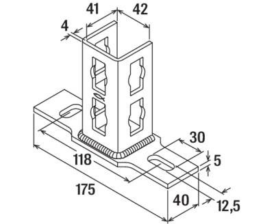 - Verbindungselement zwischen Montageschiene und Bauwerk für das Durchstecksystem.