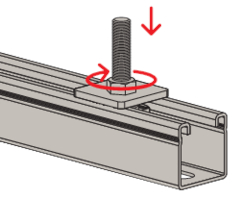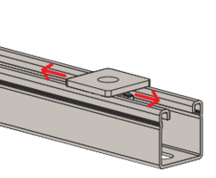 - Schnelle Montage durch 90° Drehung der Schiebemutter in der Schiene.