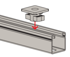 - Die Bauform der Schiebemutter lässt ein einfaches und schnelles Setzen in der Schiene zu.