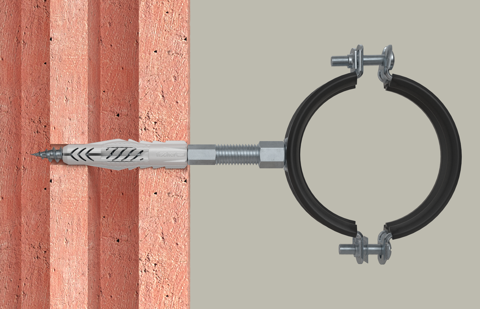 Die fischer Stockschraube STST mit Bit-Kopf eignet sich für die direkte Installation von Rohrschellen an den Untergrund. Mit dem Grobgewinde wird die Stockschraube in Holzkonstruktionen eingeschraubt, in Verbindung mit einem Dübel auch in Mauerwerk und Beton. Der Sechskantkopf mit innenliegendem TX-Antrieb vereinfacht die Montage. Für unterschiedliche Abstände zum Untergrund bietet fischer die STST in den Größen M6 bis M12 und Längen von 60 - 180 mm. Die Ausführung mit galvanischer Verzinkung ist für Installationen in Gebäuden geeignet.
