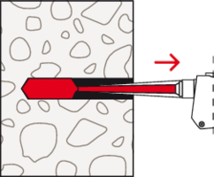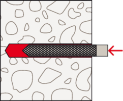 - Der Mörtel verklebt das Befestigungselement vollflächig mit der Bohrlochwand und dichtet das Bohrloch ab.