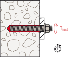 - Bei der Durchsteckmontage wird der Ringspalt zwischen Ankerstange und Anbauteil mit dem Injektionsmörtel FIS SB verfüllt.