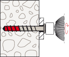 - Bei der Montage der Betonschraube FBS II 6-10 aus galvanisch verzinktem Stahl, mehrfachbeschichtetem Stahl und Edelstahl in Mauerwerk kann auch zwischen den Fugen und in der Gruppe, bei verputzten Mauerwerks-Untergründen, montiert werden.