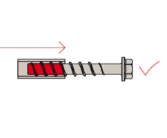 - Die kurze Ausführung mit reduzierter Einschraubtiefe ermöglicht eine geringe Bohrlochtiefe, schnelle Montage und weniger Bewehrungstreffer.