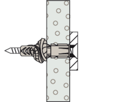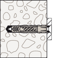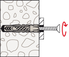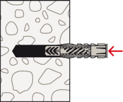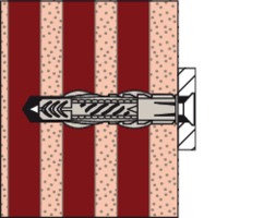 - Beim Eindrehen der Schraube verspreizt der UX im Vollbaustoff und verknotet im Hohlraum.