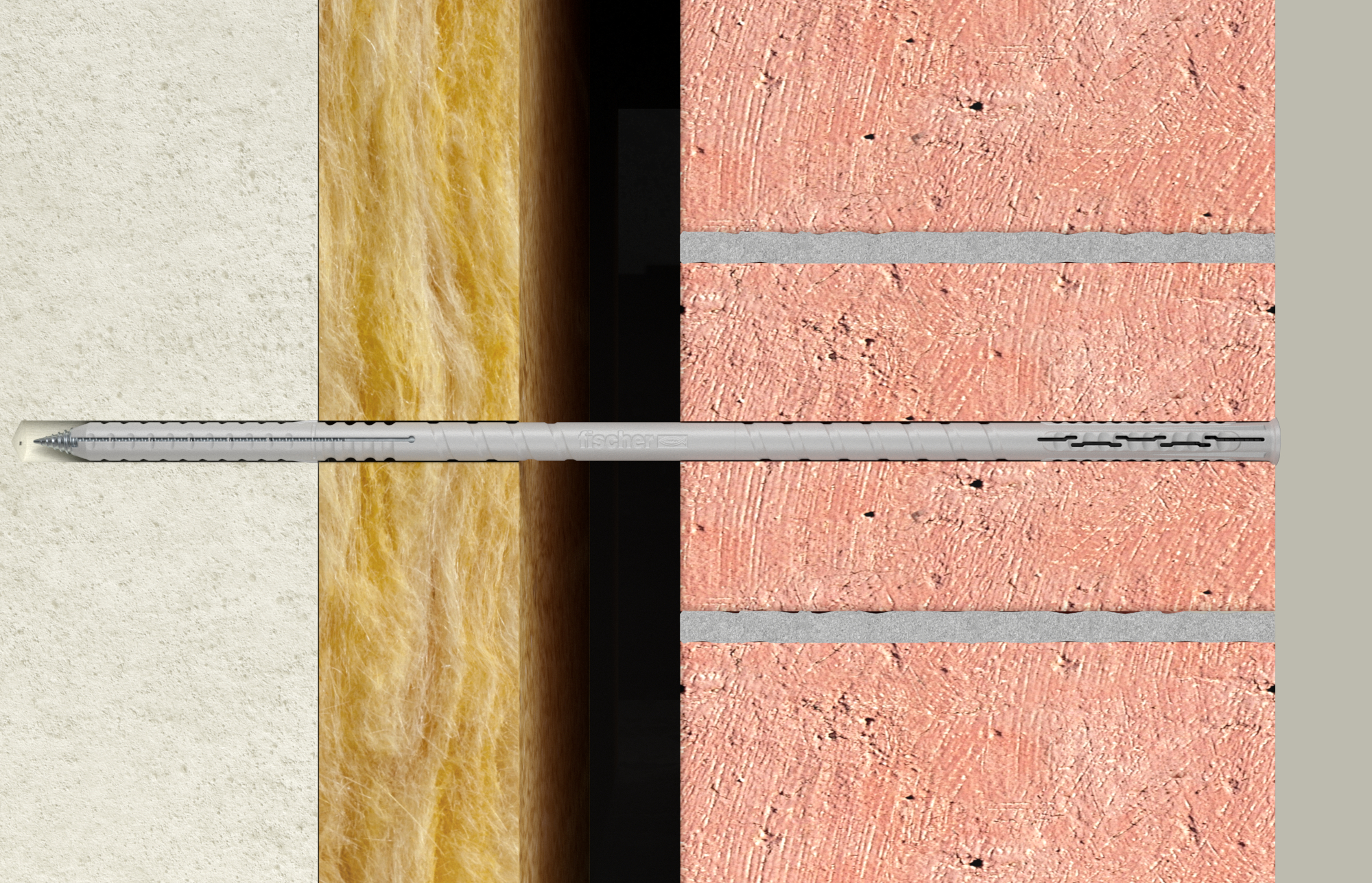 Der fischer Verblendsanieranker VBS-M ist ein mechanisches System zur nachträglichen bauaufsichtlich zugelassenen Befestigung von Verblendmauerwerk mit und ohne Luftschicht. Das System besteht aus einer Kunststoffhülse mit einer zweifachen Spreizzone und einer Schraube aus nicht rostendem Stahl. Der VBS-M wird in der zeitsparenden Durchsteckmontage in der Tragschale und im Verblendmauerwerk gesetzt. Die zwei Spreizzonen des Dübels schaffen in der Tragschale und in der Vorschale eine sichere Befestigung. Denn erst wenn der Dübel in der Tragschale greift, wird dieser im Verblendmauerwerk fixiert. Der fischer Verblendsanieranker VBS-M ist vor allem für die schnelle Verblendsanierung von zweischaligem Mauerwerk geeignet, auf das nachträglich ein Wärmedämmverbundsystem angebracht wird.