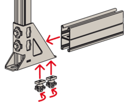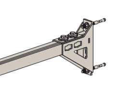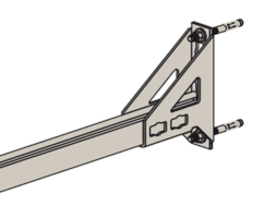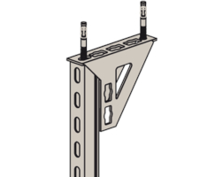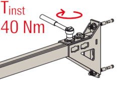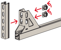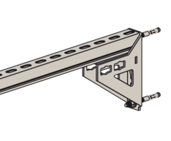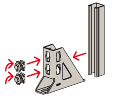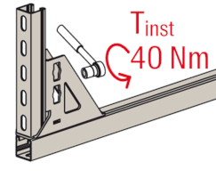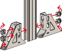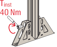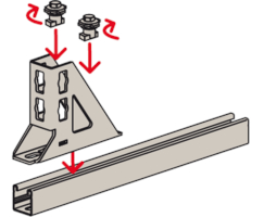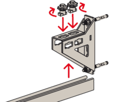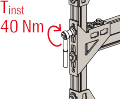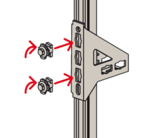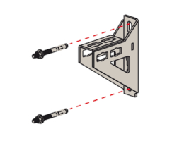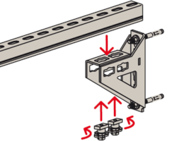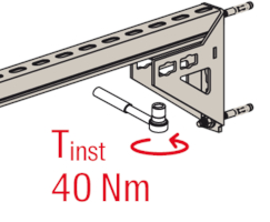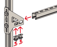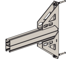 - Die Lochgeometrie erlaubt das Anbauen der Winkelkonsole in 3 Positionen an die FUS-Montageschiene bei identischer Lastaufnahme.
