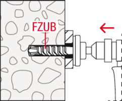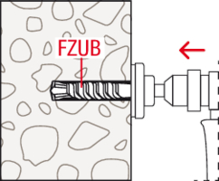 - Das hinterschnittene Bohrloch wird mit dem Spezialbohrer FZUB erstellt.