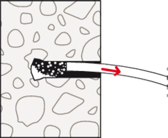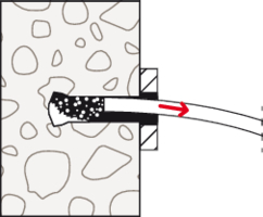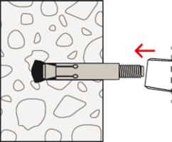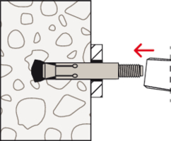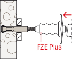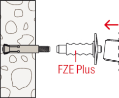 - Nach dem Einsetzen des Ankers in das Bohrloch wird die Spreizhülse mit dem Setzwerkzeug FZE Plus über den Konus getrieben und das hinterschnittene Bohrloch formschlüssig ausgefüllt.