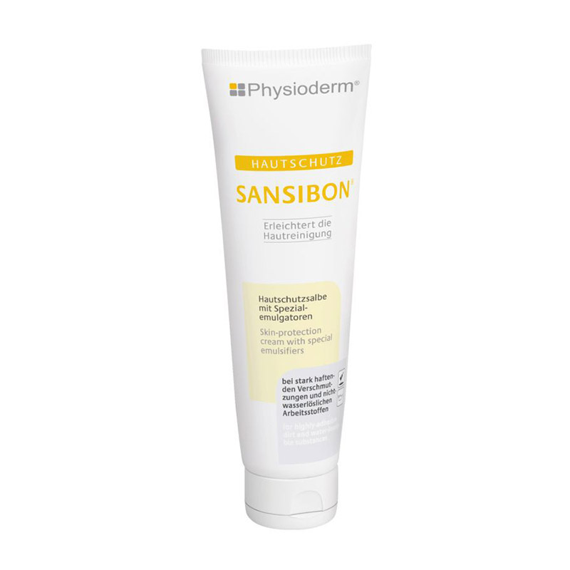 GREVEN PHYSIODERM Hautschutzcreme SANSIBON schützt effektiv vor stark haftenden Verschmutzungen und nicht wasserlöslichen Arbeitsstoffen wie Ölen, Graphit, Lacken, Klebern und Harzen. Die schnell einziehende, leicht fettende Creme mit schmutzbindenden Emulgatoren wirkt wie ein unsichtbarer Handschuh. Frei von Mineralölen und Silikonen, parfümiert und ideal für den täglichen Gebrauch, bietet sie zuverlässigen Hautschutz für anspruchsvolle Arbeitsbedingungen.