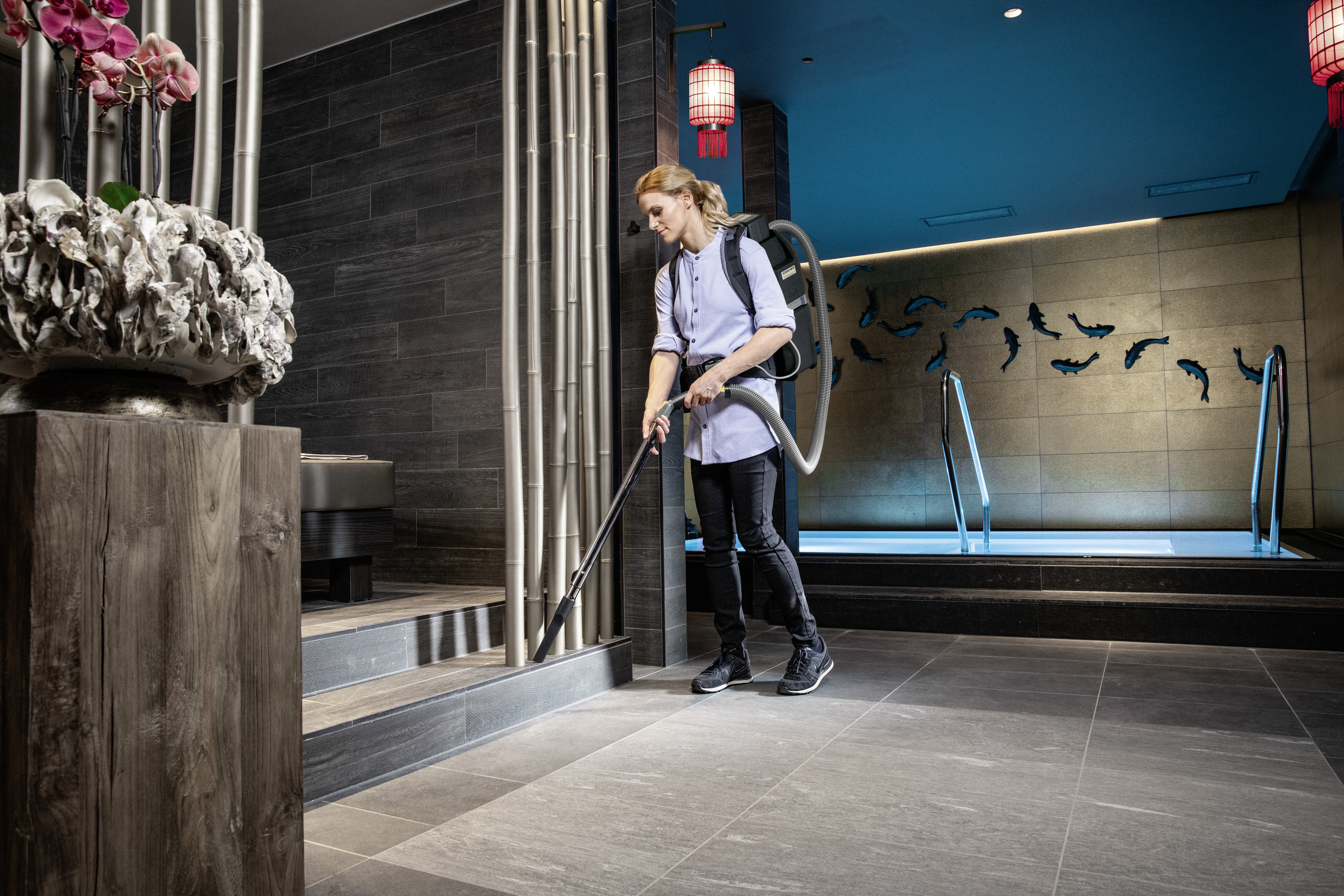 Unser ultraleichter, leistungsstarker und akkubetriebener Rucksacksauger BVL 5/1 Bp ist der erste Sauger, der dank des innovativen EPP-Materials nur < 4,6 kg (Rückentragegewicht) wiegt und dessen Materialeigenschaften gleichzeitig eine besondere Robustheit und Langlebigkeit ermöglichen. Mit einer Leistung von 500 Watt, langer Akkulaufzeit und einem 5 Liter großen Sammelbehälter ist der Rücken-Staubsauger überall dort erste Wahl, wo enge Platzverhältnisse die Reinigungsarbeiten erschweren – ob im Kino, im Flugzeug, in Bussen, Bahnen, bei der Büroreinigung oder auch auf Treppen. Das ergonomische Tragegestell und die durchdachte Bedienung, bei der alle wichtigen Betriebs- und Zusatzfunktionen über ein Bedienfeld am Hüftgurt gesteuert werden, sowie das einfache, für Rechts- und Linkshänder ausgelegte Handling sorgen für komfortables, ermüdungsfreies Arbeiten. Der bürstenlose EC-Motor ist zudem sehr beständig gegen Verschleiß. Diverse Zubehöre werden mitgeliefert, auch ein HEPA-14-Filter ist optional erhältlich. Bitte beachten Sie bei Ihrer Bestellung, dass bei dieser Geräteversion der kraftvolle Kärcher Battery Power+-Akku sowie das zugehörige Ladegerät separat zu bestellen sind.