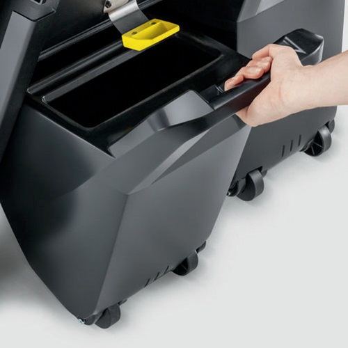Kompakt, hervorragend ausgestattet, kinderleicht zu bedienen und dazu sehr preiswert: Unsere Aufsitz-Kehrsaugmaschine KM 85/50 R Bp Pack überzeugt in allen Belangen. Die geringe Baugröße dieses Einstiegsmodells prädestiniert die Maschine auch zu Arbeitseinsätzen in engen und zugestellten Bereichen, während sie im Innen- und Außenbereich mit einer hohen Flächenleistung punktet und ihre Stärken souverän ausspielen kann. Zwei ausweichende Seitenbesen mit Drehzahlregulierung – jeweils rechts und links am Gerät –, ein großer Staubfilter für staubfreies Arbeiten, eine von außen sichtbare Verschleißanzeige der Hauptkehrwalze sowie Batterie und Ladegerät sind serienmäßig mit an Bord. Die pendelnd gelagerte Walze muss zu keinem Zeitpunkt nachjustiert werden und entfernt dennoch Schmutz auch bei Bodenunebenheiten rückstandslos. Wartungsarbeiten sind mühelos durchführbar. So ist der Staubfilter komfortabel vom Sitz aus zu reinigen und die Hauptkehrwalze werkzeuglos zu wechseln. Die weit öffnende Gerätehaube ermöglicht einen bequemen Zugang zu inneren Komponenten. Dank des integrierten Home-Base-Systems ist auch die Mitnahme zusätzlicher Reinigungsutensilien bequem möglich.