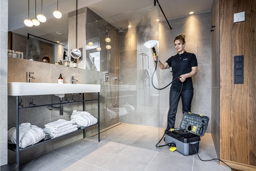 Dank des einzigartigen All-in-one-Box-Designs sehr kompakt, robust und langlebig, dazu umfangreich ausgestattet und besonders einfach zu bedienen: Der Dampfreiniger SG 4/2 Classic überzeugt mit exzellenten Reinigungsergebnissen, einem hervorragenden Preis-Leistungs-Verhältnis und maximaler Wirtschaftlichkeit. Das gerade mal 7,5 Kilogramm leichte Gerät ist der kompakteste professionelle Dampfreiniger seiner Klasse, in nur 3 Minuten einsatzbereit und bietet mit 4 Bar Dampfdruck mehr als ausreichend Reserven zur gründlichen Reinigung und Sanitation ganz ohne den Einsatz chemischer Hilfsmittel. Theken, Schankanlagen, Fliesen, Kochfelder, Öfen und vieles mehr werden bis in die kleinste Ritze makellos sauber – ganz unabhängig von ihrem Verschmutzungsgrad. In besonders hartnäckigen Fällen hilft die zuschaltbare VapoHydro-Funktion mit Heißwasser und beseitigt wirksam auch starke Verschmutzungen und Fette, der Wassertank ist entnehmbar und jederzeit befüllbar. Mitgelieferte Zubehöre wie Dampfschlauch, Handdüse, Punktstrahldüse, Powerdüse, Rundbürste, Flachbürste, Dampfschaber und Mikrofaser-Überzug sind alle direkt im Gerät untergebracht – optional ist auch eine Bodendüse erhältlich.