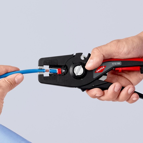 automatische Abisolierzange für alle gängigen flexiblen und massiven Leiter · integrierter, gut zugänglicher Seitenschneider bis 2 mm Ø Weitere technische Eigenschaften: · Messer: platzsparend durch Arretierung der Zange