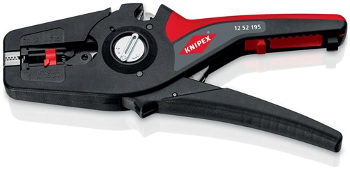 selbsteinstellend · einfaches, präzises Abisolieren und Schneiden von feindrähtigen bis massiven Rundkabeln im großen Kapazitätsbereich von 0,08 bis 16mm² mit nur einer Zange · Kabelschneider bis 16 mm² · bei Bedarf kann optional feinjustiert werden, z. B. in Extrembereichen · guter Grip durch halbrunde Metall-Haltebacken mit Kammprofil · parabelförmige Abisoliermesser für exakten Schnitt · leicht auswechselbare Messerkassette · einstellbarer Längenanschlag · Beschriftungsfeld zur Individualisierung · Gehäuse: aus glasfaserverstärktem Kunststoff · Messer: Spezial-Werkzeugstahl, ölgehärtet