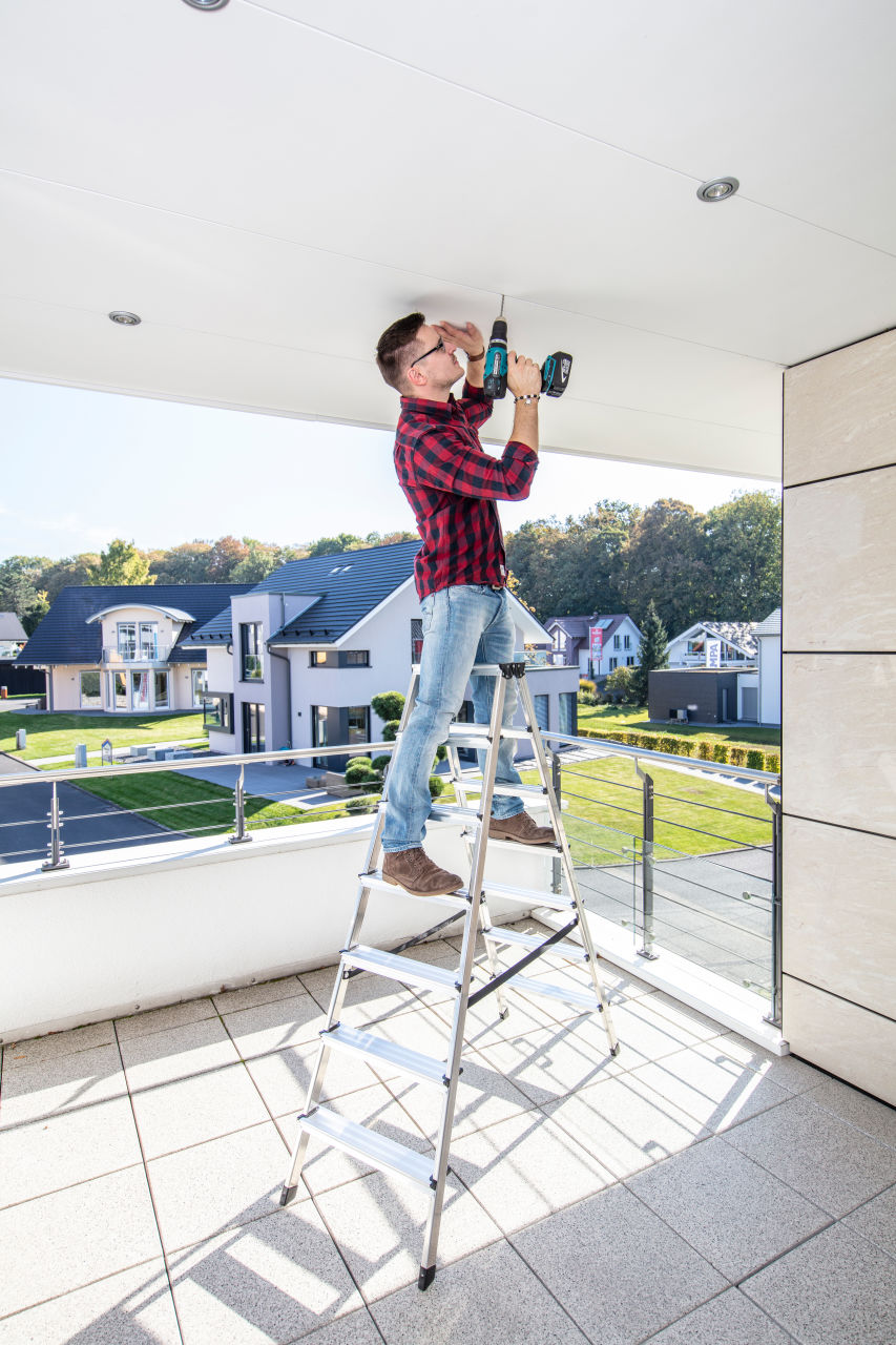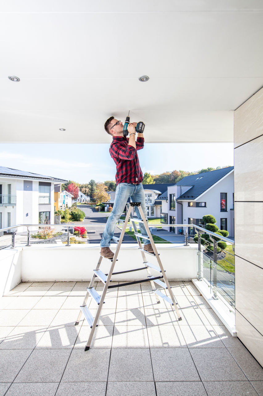 Info: Beidseitig begehbare Stehleitern dürfen nur bis zur dritten