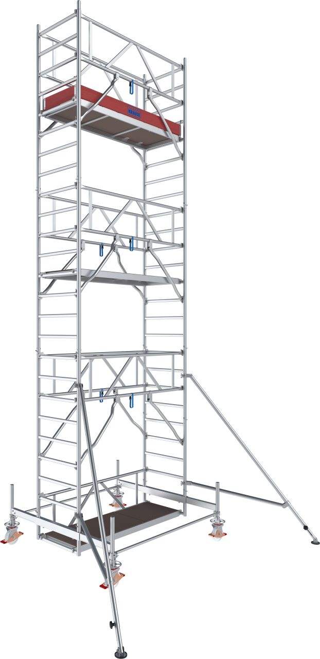 + Das universelle Alu-Fahrgerüst für Arbeiten bis zu einer max. Arbeitshöhe von 14,50 m (bei Gerüstfeldlänge 2,00 m bis zu 12,50 m)
