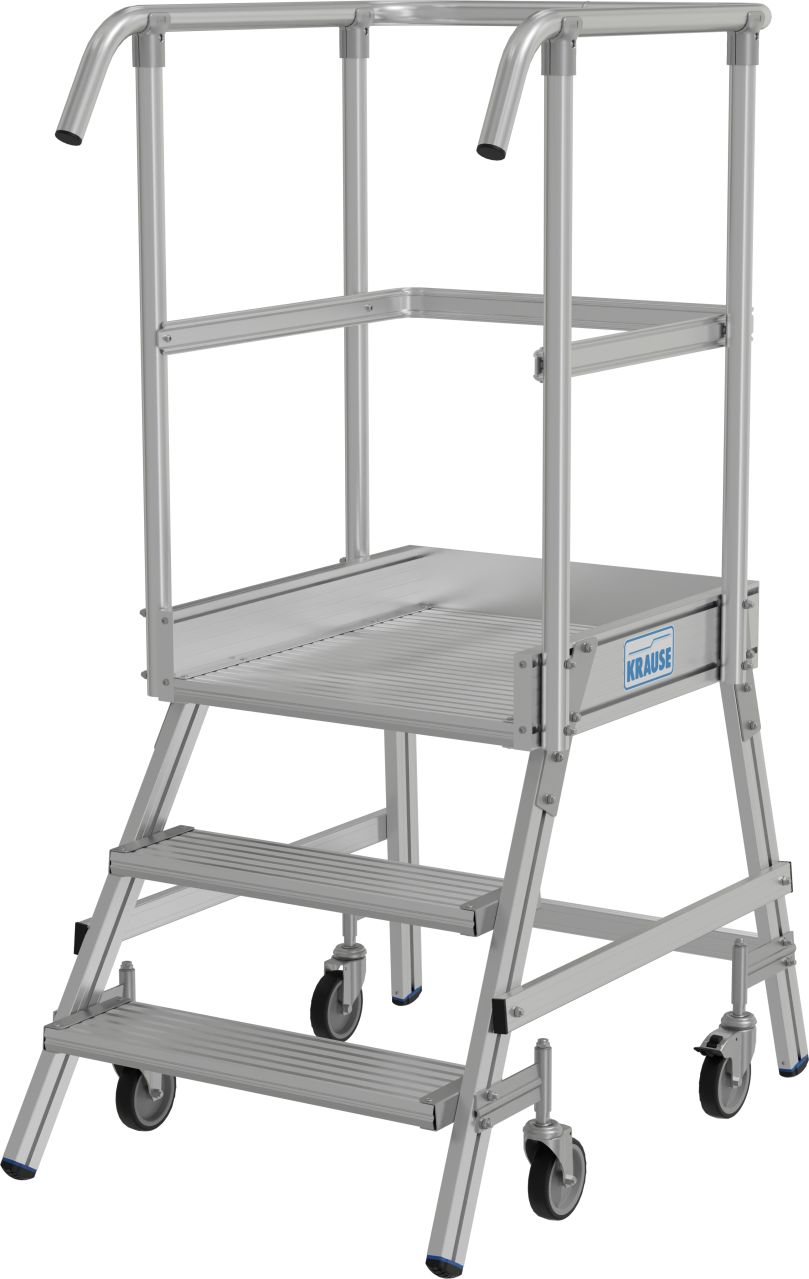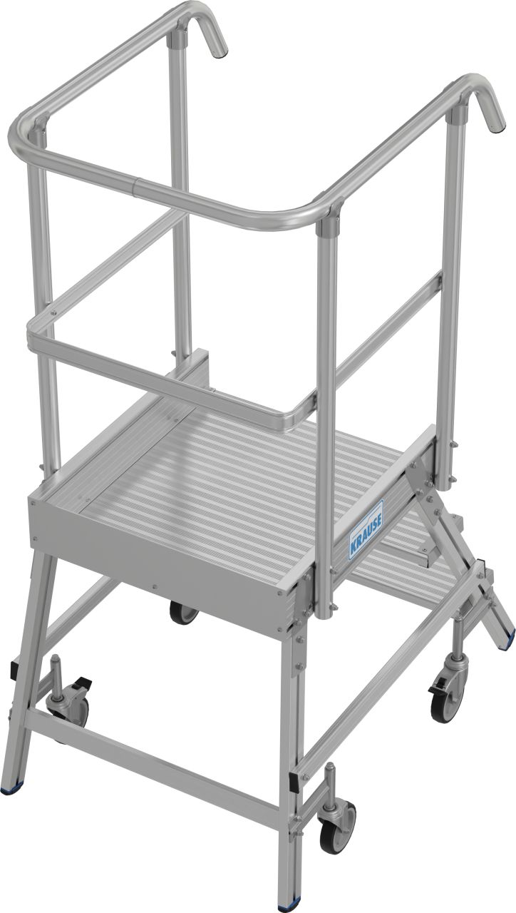 + Leichtes Verfahren durch 2 am Stützteil angebrachte Bockrollen 125mm+ Alu-Gitterrost/-Lochblechstufen auf Anfrage (Tiefe 240 mm)