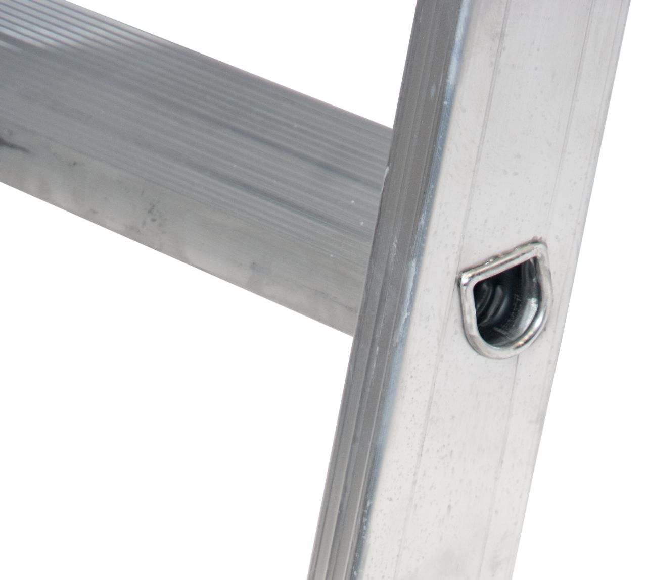 + Hochfest verbördelte Stufen-/Holmverbindung mit 80 mm tiefen, profilierten Stufen für einen sicheren Aufstieg und bequemen Stand