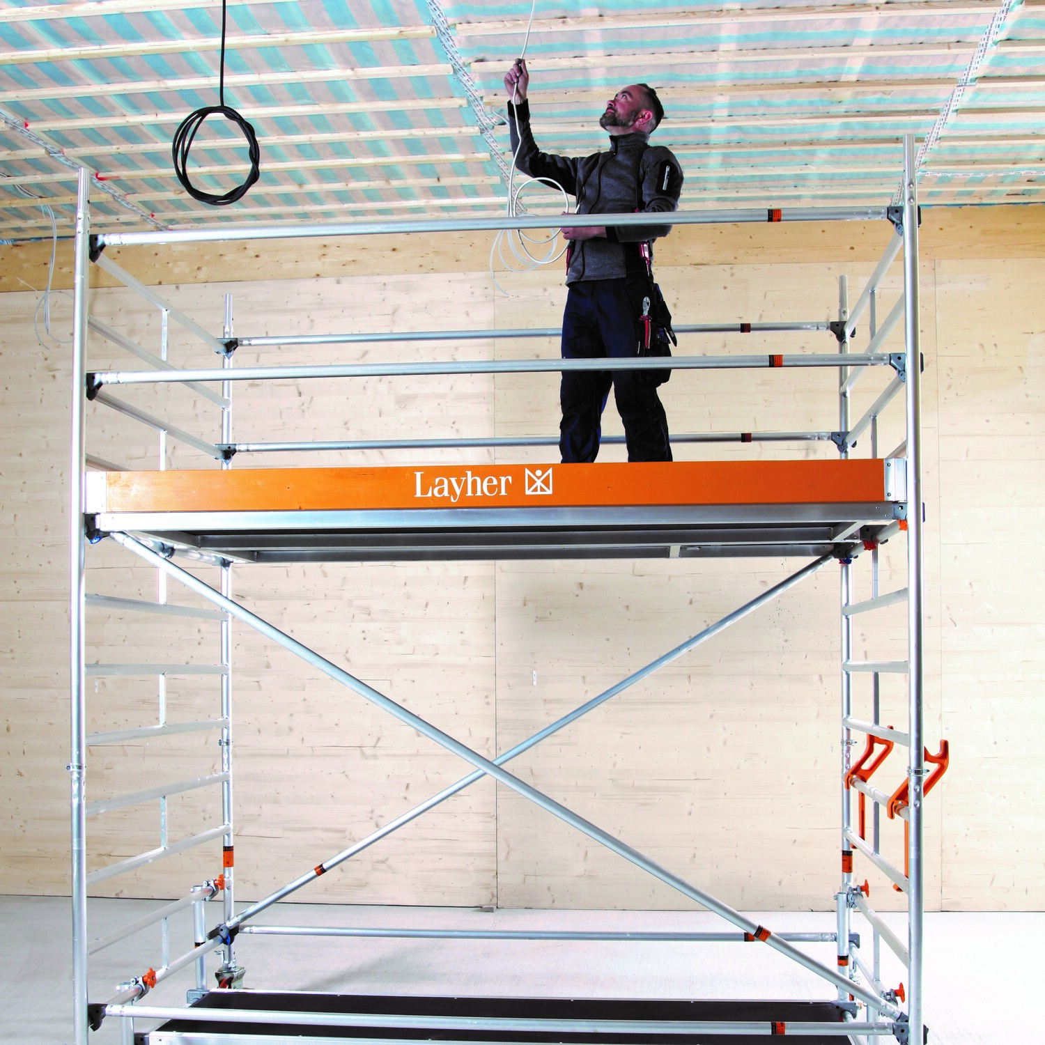 Layher Fahrgerüst Uni Breit P2 mit Gerüststützen Typ: 1402127 | SH: 7,2 m / AH: 9,20 m