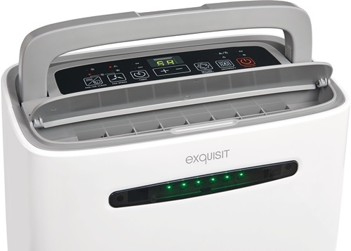 das Gerät schaltet sich automatisch ab, wenn der Wassertank voll ist · automatische Neustart-Funktion · für Raumgrößen von 30-35 m² · Entfeuchtungs LED-Anzeige · mit Abwasserschlauch