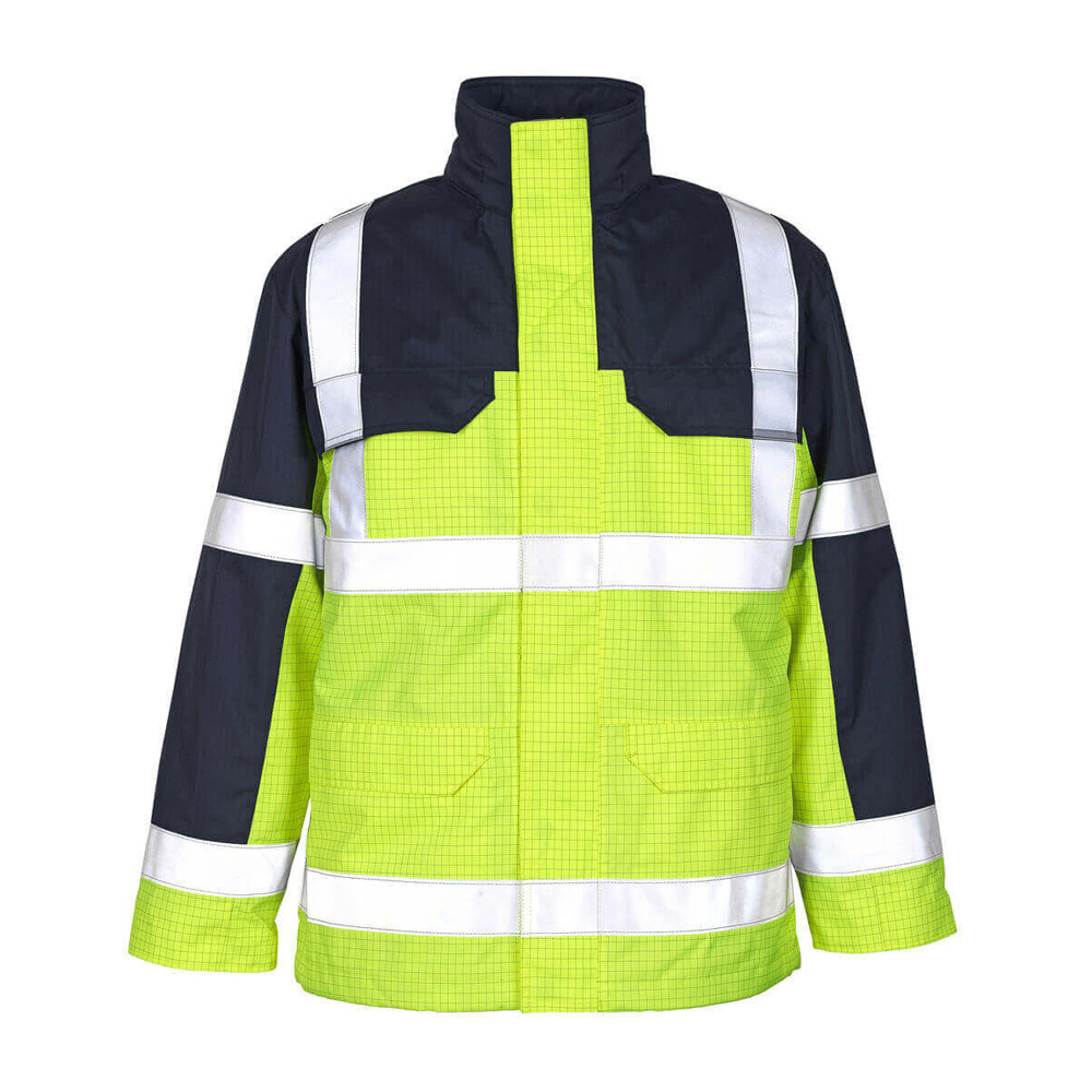 Der MASCOT Multinorm- und Warnparka LUNGERN 06831 in Gelb/Marine bietet erstklassigen Schutz und Sichtbarkeit in anspruchsvollen Arbeitsumgebungen. Hergestellt aus 98% Polyamid und 2% Kohlefaser, ist dieser Parka atmungsaktiv, wind- und wasserdicht dank verklebter Nähte. Die herausnehmbare Steppfutter sorgt für zusätzlichen Komfort bei kaltem Wetter. Ausgestattet mit einem Zwei-Wege-Reißverschluss, doppelter Wetterschutzleiste und verdeckten Druckknöpfen bietet er optimalen Schutz vor den Elementen. Reflexschulterstreifen und waagerechte Reflexe erhöhen die Sichtbarkeit. Praktische Details wie zwei Brusttaschen, zwei Vordertaschen und Rippenbündchen an den Handgelenken runden das Design ab. Perfekt für den Einsatz unter härtesten Bedingungen.