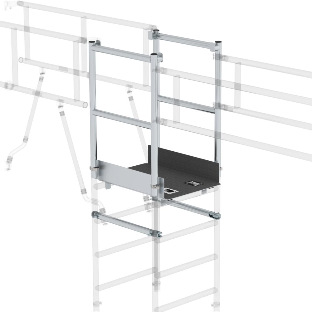 Zum Koppeln von Rollgerüsten für besondere Anforderungen Gefertigt unter Berücksichtigung an die DIN EN 1004 Maximal einsetzbar bis zu Plattformhöhen von 3,8 m und Plattformbreiten von 1,35 m Für Plattformbreite 0,75 m bestehend aus: 1 Trittblech · 4 Federclips · 2 Geländerrahmen · 2 Gerüstverbinder Für Plattformbreite 1,35 m bestehend aus: 2 Trittbleche · 2 Geländerrahmen · 2 Gerüstverbinder Länge: 0,85 m Lieferzeit: 10 Arbeitstage Hinweis: einsetzbar für max. Plattformhöhe 3800 mm und 2 Feldern