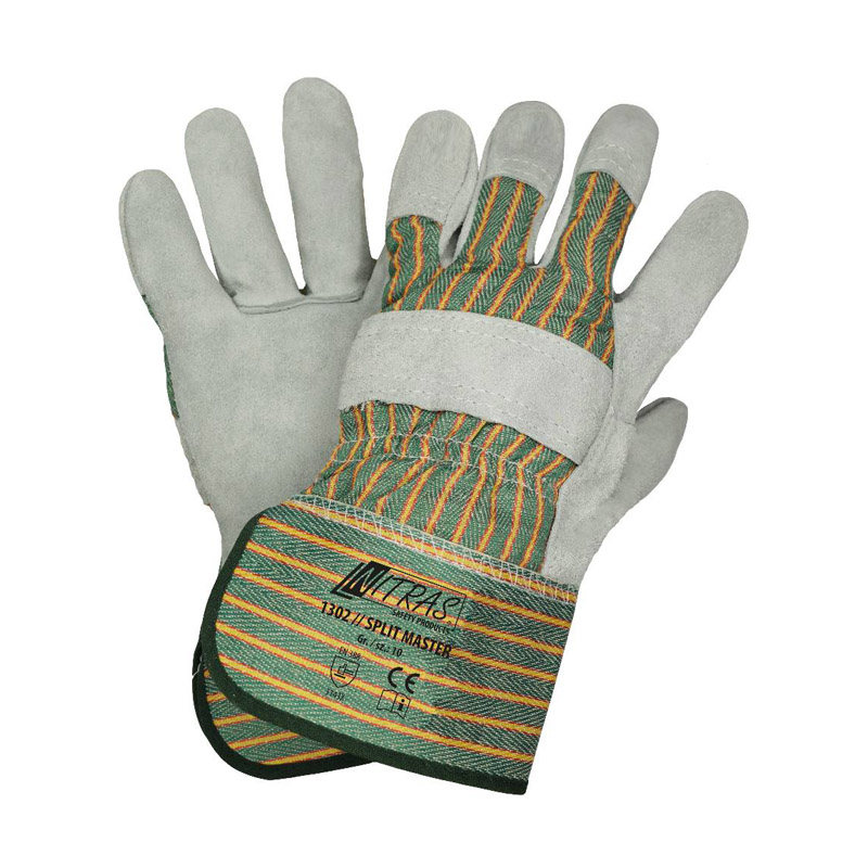 Der Schutzhandschuh SPLIT MASTER 1302 GR aus robustem Rindspaltleder bietet zuverlässigen Schutz und Komfort für anspruchsvolle Arbeiten. Mit seinem gestreiften Baumwoll-Rücken und dem gefütterten Innenhandbereich gewährleistet er hohe Strapazierfähigkeit und angenehmes Tragegefühl. Die gummierte Stulpe sorgt für sicheren Sitz und zusätzlichen Schutz. Ideal für mechanische Anwendungen, bei denen Langlebigkeit und Widerstandsfähigkeit gefragt sind.