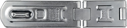 robust · wetterfest verzinkt · durch gehärteten Stahl-Ösen sowie verdeckten Stiften und Schrauben besitzt die Überfalle 100 zudem eine hohe Aufbruchsicherheit · Gelenkstifte gegen Heraustreiben geschützt · zur Verwendung mit einem Vorhangschloss