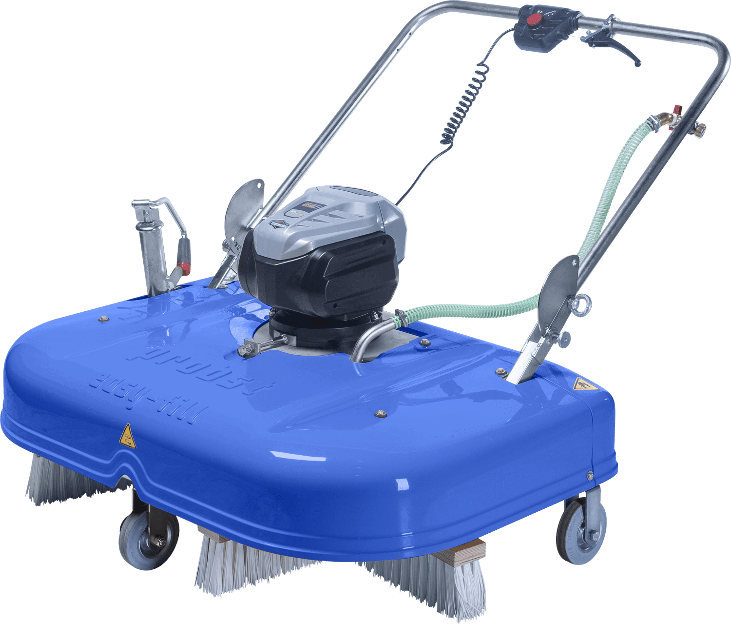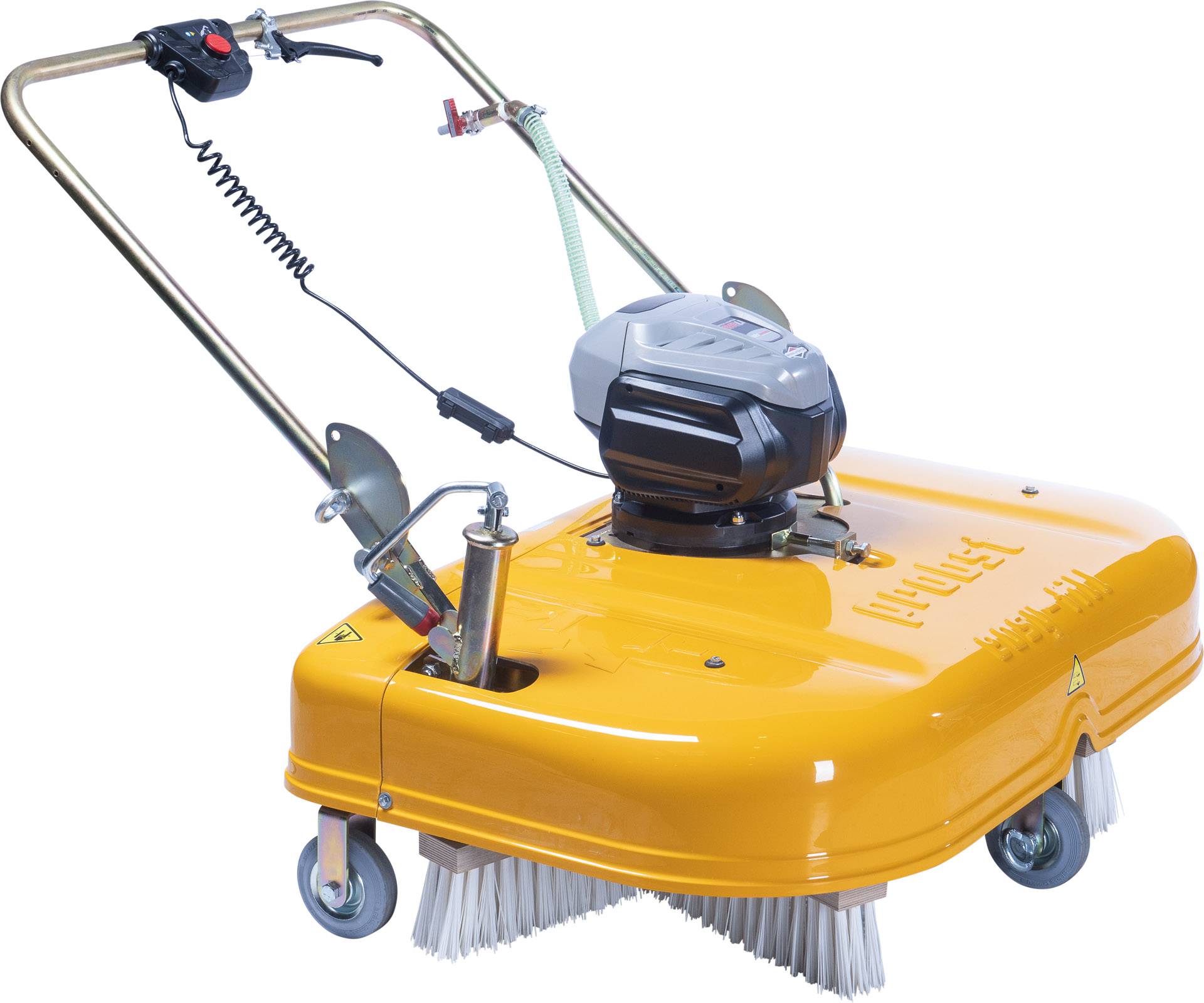 Der Elektroantrieb treibt nicht nur die Bürstenscheiben an, sondern erzeugt auch einen Vorwärtsdrive! So muss das Gerät nicht mit hohem Kraftaufwand geschoben werden, sondern muss nur geführt werden!