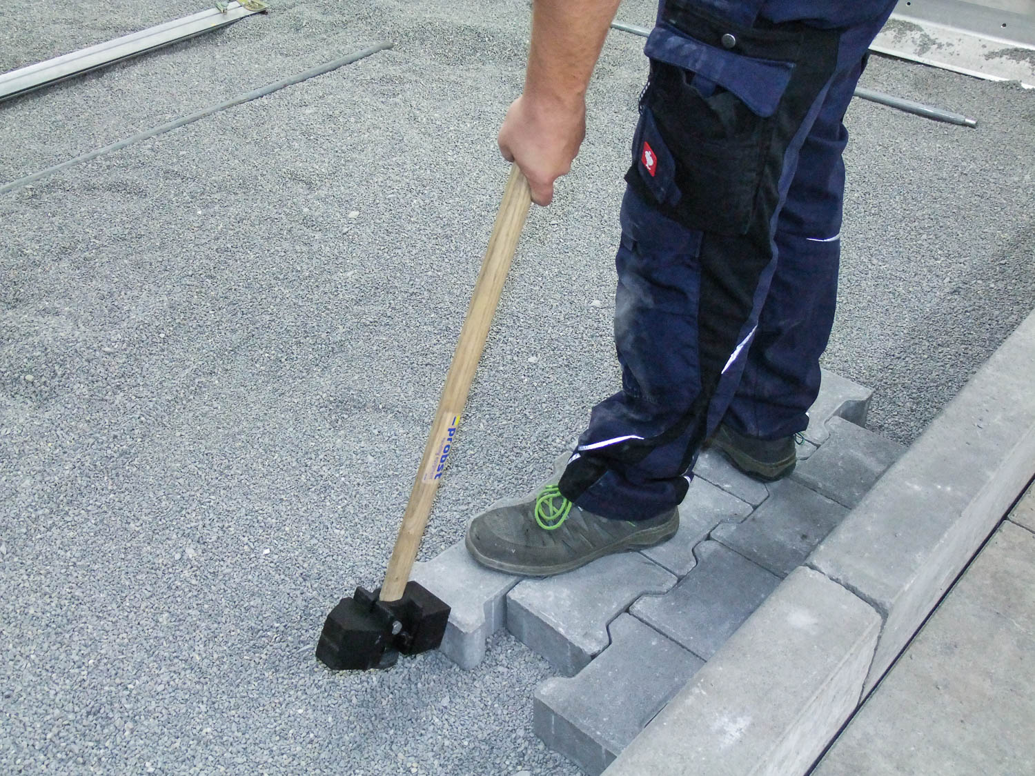 Der GH-ERGO ist mit zwei unterschiedlichen Gummielementen ausgestattet. Eine Seite ist mit einem rechteckigen, leicht abgeschrägten Profil bestückt. So trifft das Gummiprofil flächig auf den Stein, ohne dass der Benutzer zu nahe an der Kante der Steinlage stehen muss. Auf der zweiten Seite verjüngt sich das Profil dachförmig. Dies ermöglicht ein treffsicheres Schlagen, z.B. in die Kehlen von H-Steinen.