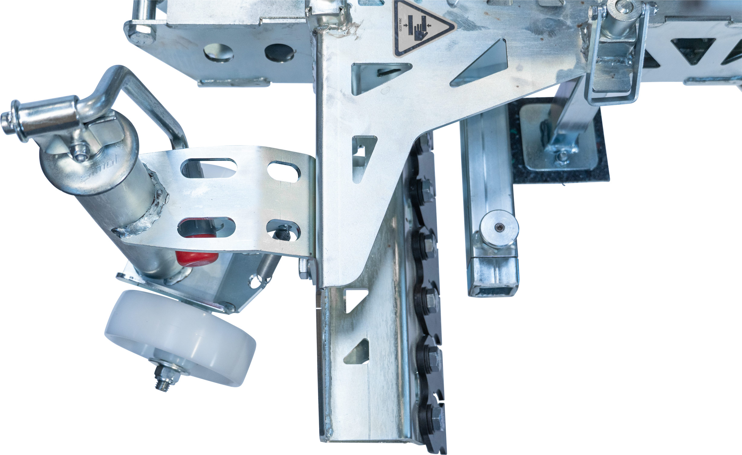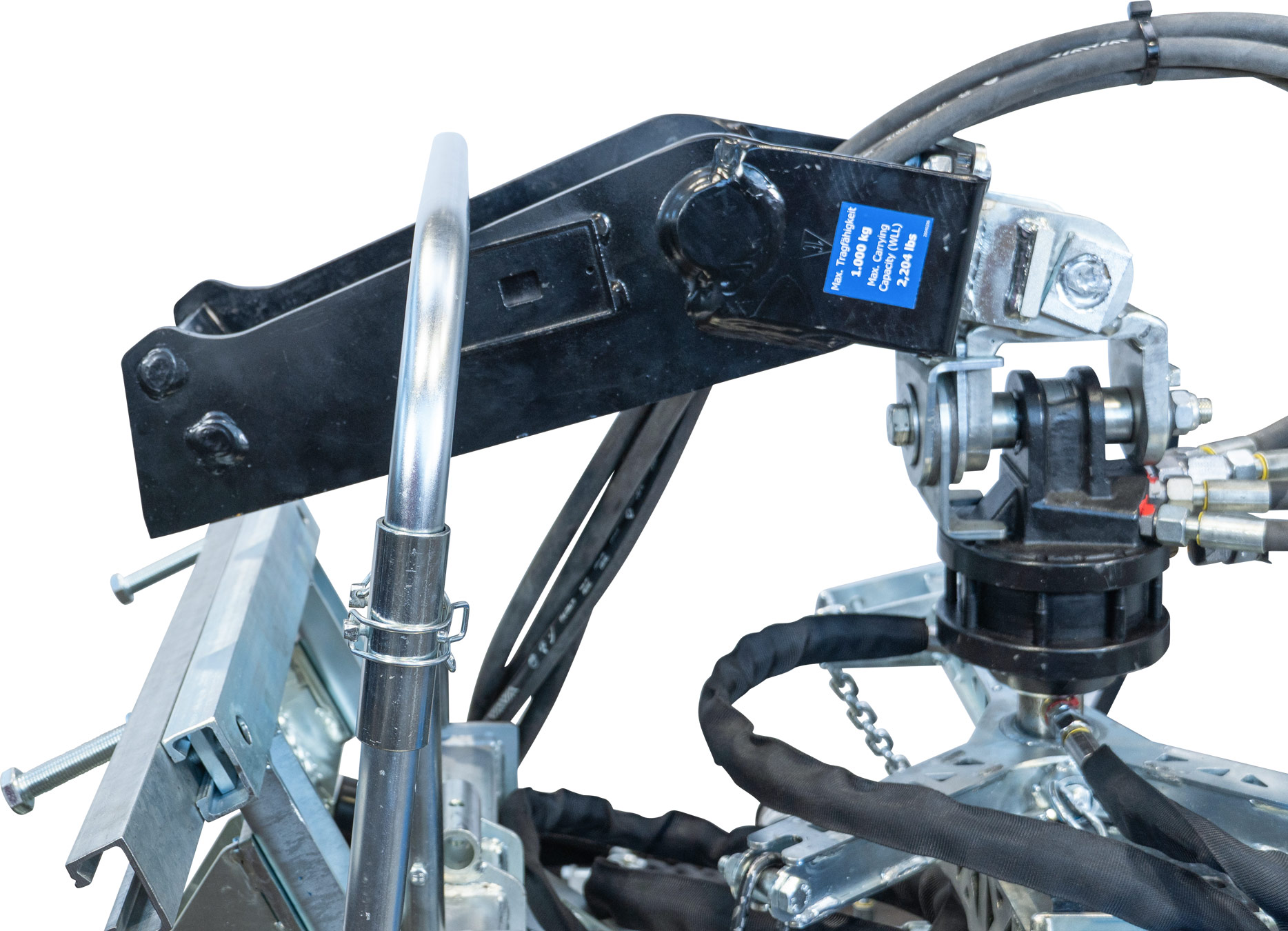Klappbare Handgriffe erleichtern das Anlegen an engen Stellen wie Hauswänden – und das ohne zeitaufwendige Demontage – und dienen gleichzeitig als Auflage für die Baggeraufhängung.