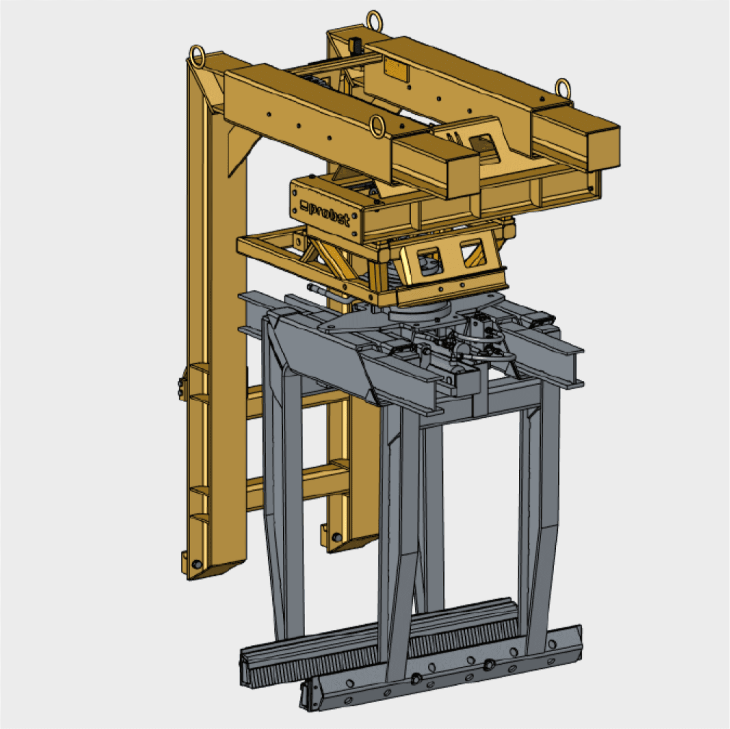 Zur hydraulischen Verschiebung des Aufhängepunktes der Zange, in und quer zur Fahrtrichtung gesehen.