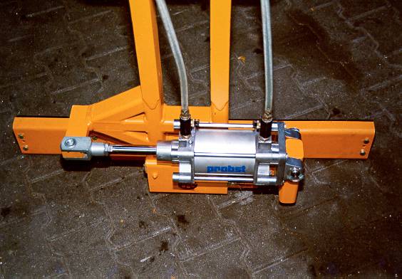 Das Klammern und Drehen um die Längsachse erfolgt pneumatisch.